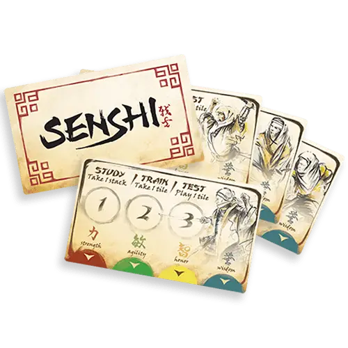 Each player in Senshi takes the role of a warrior-monk studying and training for the tests that will take place to determine the temple’s next master. Each player takes one of the Training Cards and places it in front of them.