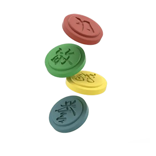 When a player chooses to TRAIN, they take one Tile from the top of any Stack, and take it into their hand. You can choose the top tile from a Stack in the middle of the table, from your own Training Card, or from a Stack on an opposing player’s Training Card.