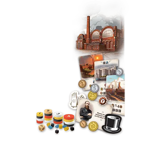 Furnace is an engine-building Eurogame in which players take on the roles of 19th-century capitalists building their industrial corporations and aspiring to make as much money as they can by purchasing companies, extracting resources, and processing them in the best combinations possible.