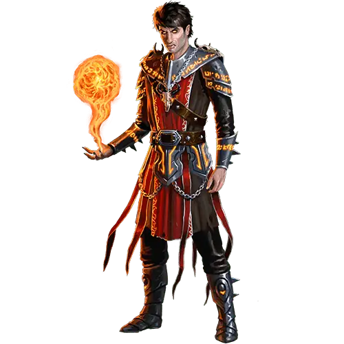 The Warlock has forged a pact with Bael, an ancient demon. This pact has granted him great skill with demon and fire spells. The Warlock executes his malevolent schemes by commanding demons and unleashing torrents of flame.